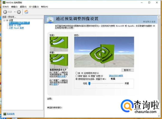 出现如图所示的界面,可以选择性能或者质量的倾向程度,如图所示。