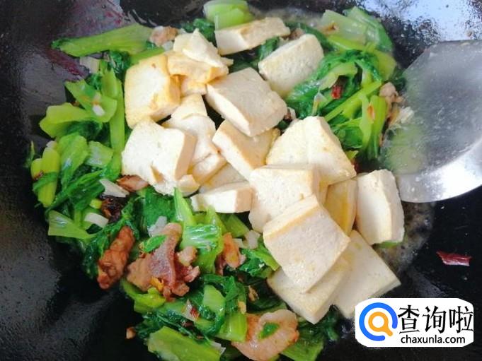 这样好吃又营养的油菜熟肉炒豆腐已经做好了,盛入盘中就可以吃了,这道菜在家里很受欢迎,如果有喜欢的可以尝试做一下。