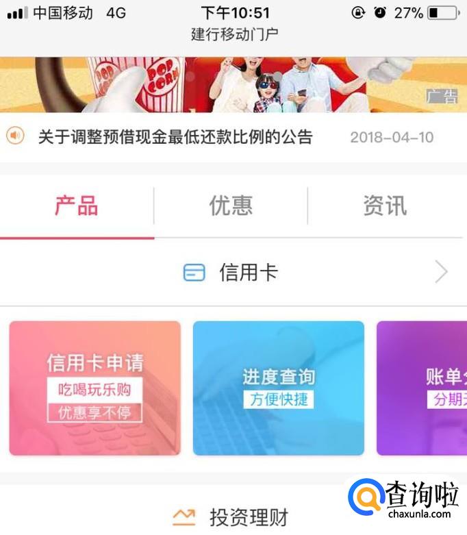 进入到中国建设银行的官方网站后,点击信用卡选项,选择信用卡申请