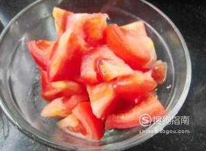 将西红柿洗净切块备用,不喜欢吃皮的人可以用热水烫一下之后扒皮,然后再切块。