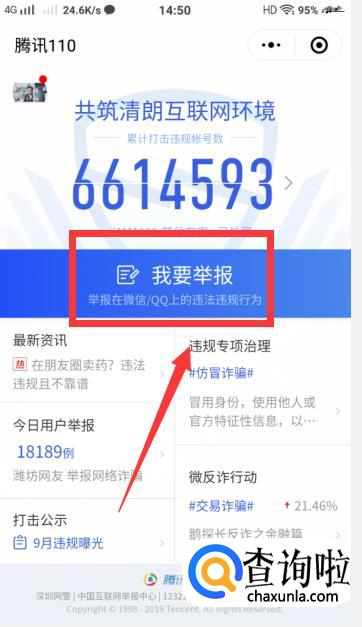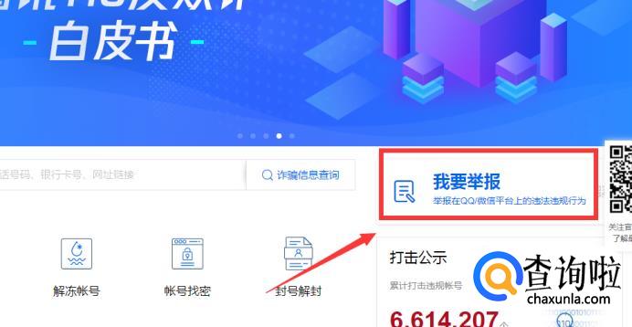 如果遇到有问题的号码,比如诈骗嫌疑的,或者拐卖嫌疑的反正就是一系列的违规操作都可以进行举报,点击【我要举报】,然后就可以用微信扫二维码进行举报。