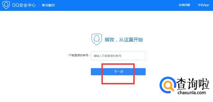 如果你的QQ号被冻结了,就可以点击【解冻账号】,选择【QQ】,进入后输入【不能登录的账号】,点击【下一步】就可以啦。