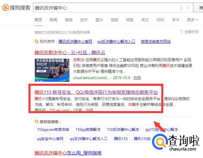 在搜狗搜索栏里面输入【腾讯反诈骗中心】,点击【搜索】,点击进入【腾讯110】,点击【登录】输入正确的QQ号和密码即可。
