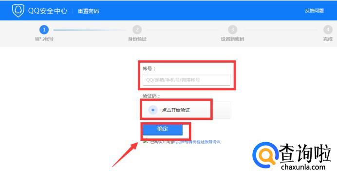 如果你的QQ密码不记得了,就可以点击【账号找密】,进入后,输入正确的QQ号,完成验证后,点击【确定】进入。