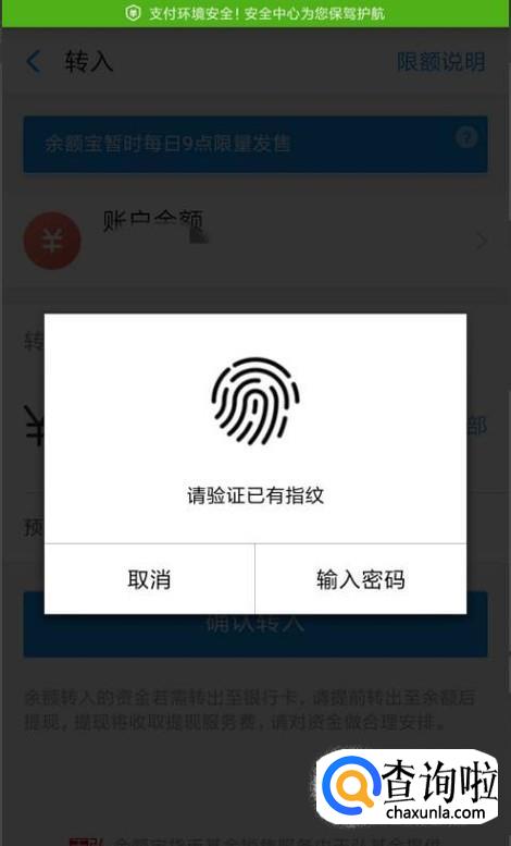 最后就是输入指纹确认或是输入支付密码就可以了。