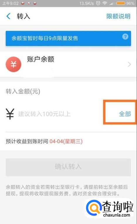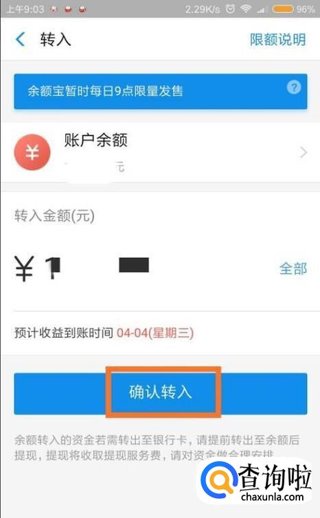 这里可以把余额全部转入到余额宝,也可以自己选择转入多少。