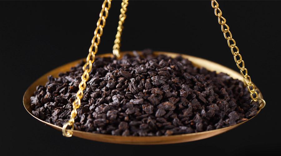 另外一种老茶头比较紧实,这是因为堆子里面有很多的茶叶,把底层的茶叶压得比较紧。紧实的老茶头经过切削,富有亮泽。泛着油光的外表,和“闪闪发光”的银子有相似之处。碎银子的产量比较低。每生产1千克的碎银子,需要消耗400千克的熟茶。