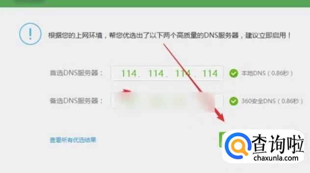 也可以将DNS设置为纯净的类型,点击360的DNS优选功能。