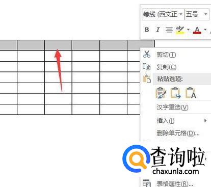 接着选中其中的一行,当选中的时候表格是呈现出灰色的,如图所示,然后点击鼠标右键,这时候可以看到有一个写着合并单元格,点击就可以了。