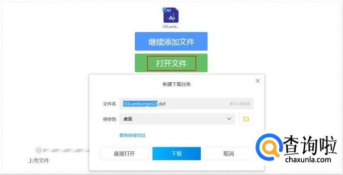 待转换完成后可以点击“打开文件”,会有“新建下载任务”弹窗出现,您可以对转换成功后的dxf格式的图纸文件选择好保存位置并且下载到电脑端进行查看。如下图: