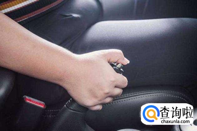 然后等到车停稳以后拉起手刹,如下图所示。我们在拉手刹的时候一定要拉到位且要拉到底。这样停车才会更安全。