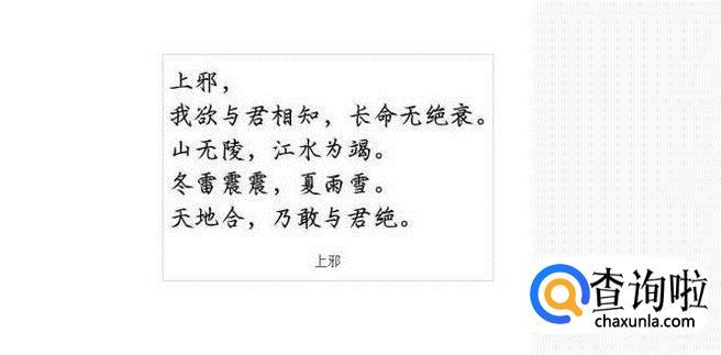 山无陵江水为竭冬雷震震夏雨雪天地合乃敢与君绝