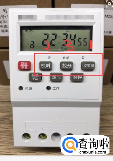 然后我们就要设置“时”、“分”了,我们先按“校时”,之后就会出现00-23的数字,也就是24小时的数字,“时分”就会出现1-59的数字,我们根据时间情况进行调整。