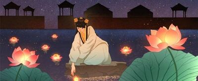 中元节,源于佛教盂兰盆会。相传释迦牟尼弟子目连尊者父母双亡,修道之前十分思念母亲,得道后,他开天眼通在地狱寻找自己的母亲。发现其母堕落饿鬼道中,食物入口,即化为烈焰,饥苦太甚。目连无法解救母厄,于是求教于佛,以救其母。佛陀被目连的孝心感动,授予其《佛说盂兰盆经》。