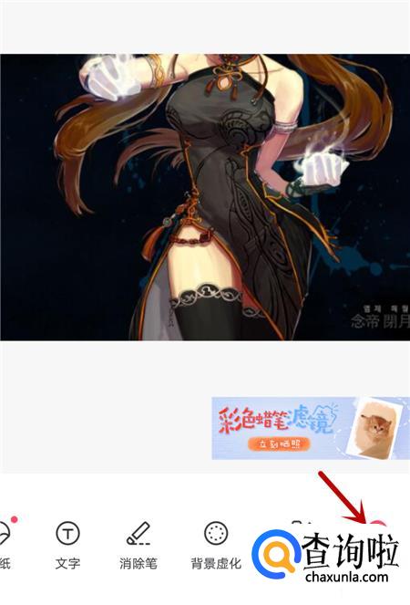 选择好笔的大小后,用手指在水印的地方涂抹几下,水印就没有了,然后点击右下方的保存按钮,去掉水印后的图片就保存在手机里了。