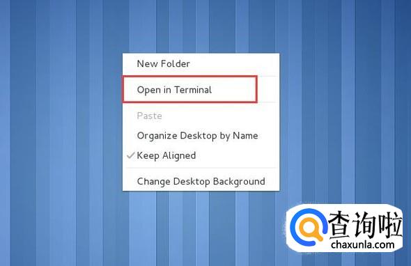 首先打开Linux系统,右键单击桌面,选择Open In Terminal选项,如下图所示
