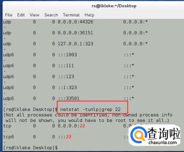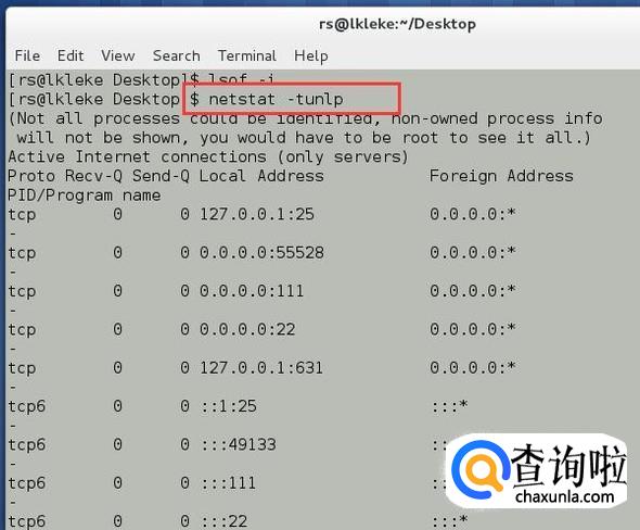如果想查某个端口的占用情况则需要输入命令netstat -tunlp|grep 端口号,如下图所示