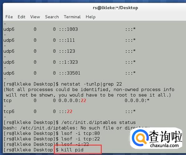 最后如果想关掉某个端口的占用可以使用kill命令直接清除占用端口的pid,如下图所示