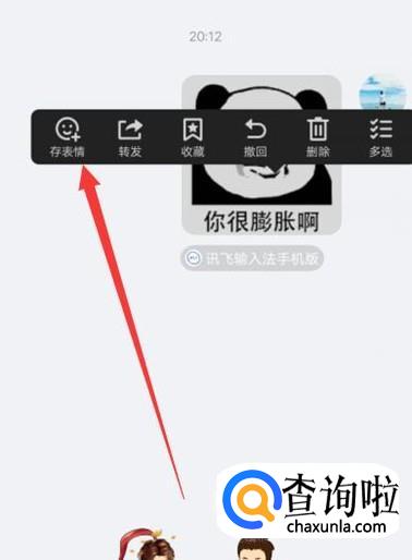 回到QQ页面之后,长按住图片,然后点击“存表情”即可,如图所示。