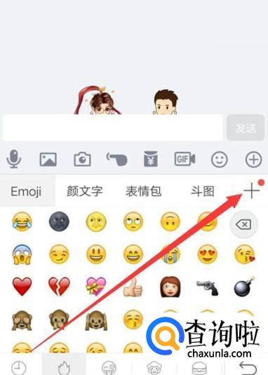 选择一个想要发送的表情,点击一下,如图所示。