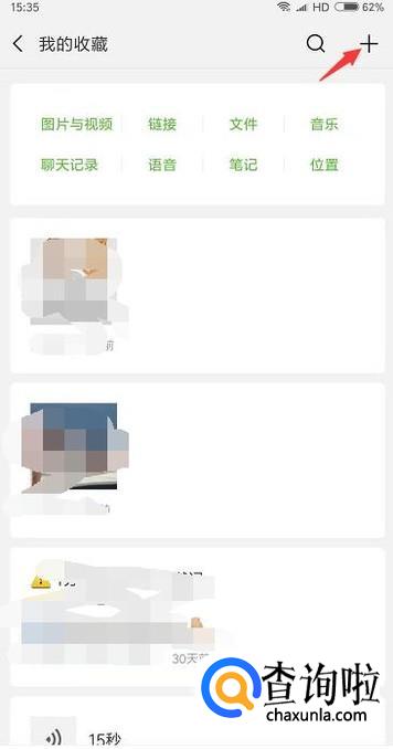 在收藏的页面里会看到右上角有一个“+”的符号,点击一下。