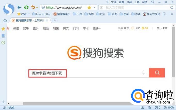 首先,我们打开我们电脑上面的浏览器,然后在搜索引擎中输入魔兽争霸3地图下载,之后按回车键;