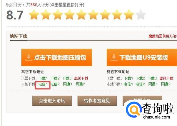 弹出的界面,我们点击本地下载中的电信1;