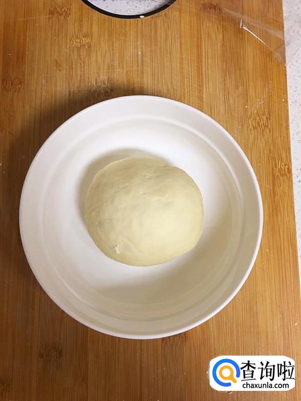 然后揉成一个光滑的面团,放入大碗中,并盖上保鲜膜,放在一个较为温暖的地方,发酵50分钟左右。