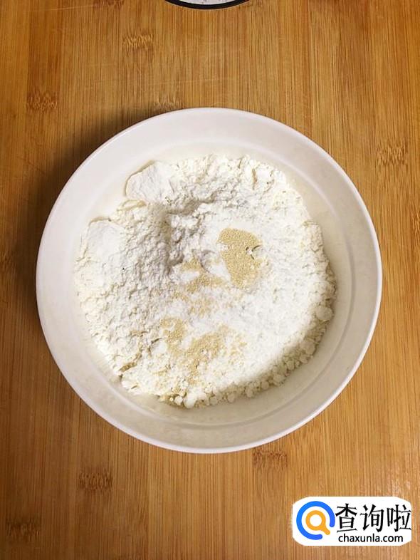 将200g面粉放入碗中,再放入1.5g酵母,搅拌均匀。