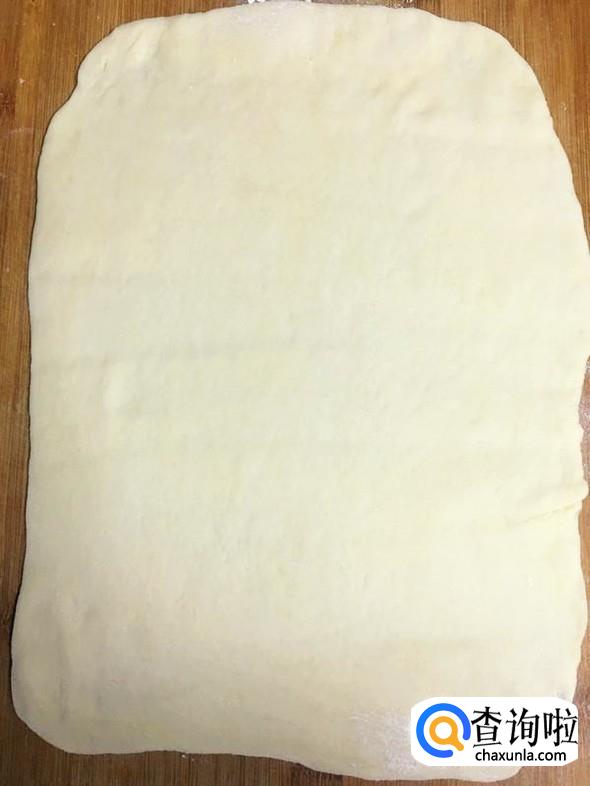 发酵好的面团擀成长方形。