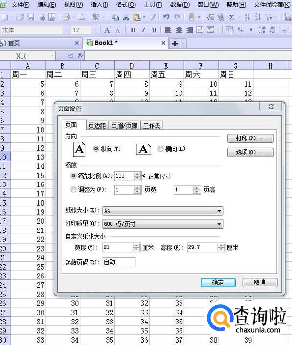 点击菜单中的文件,再点击下拉菜单中的页面设置,出来一个页面设置选项框。