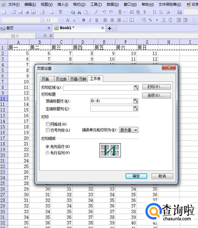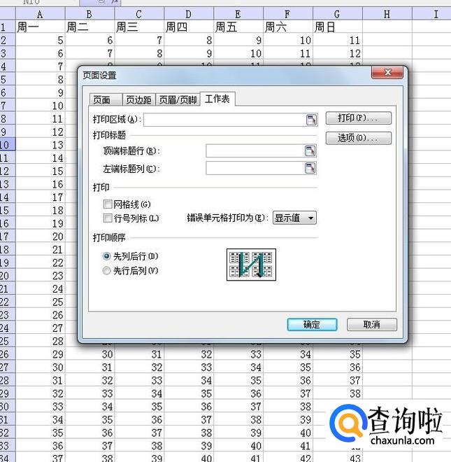 点击工作表选项,出来的选项框内都是空的,需要我们自己设置。