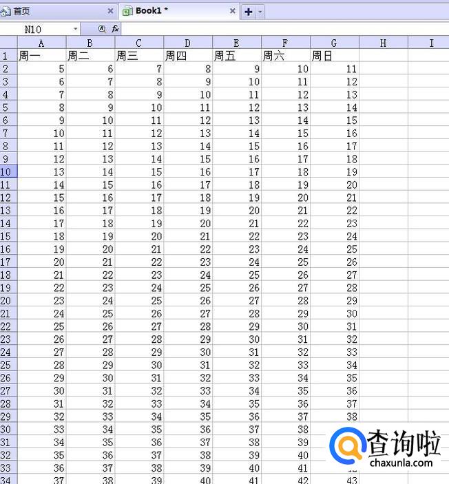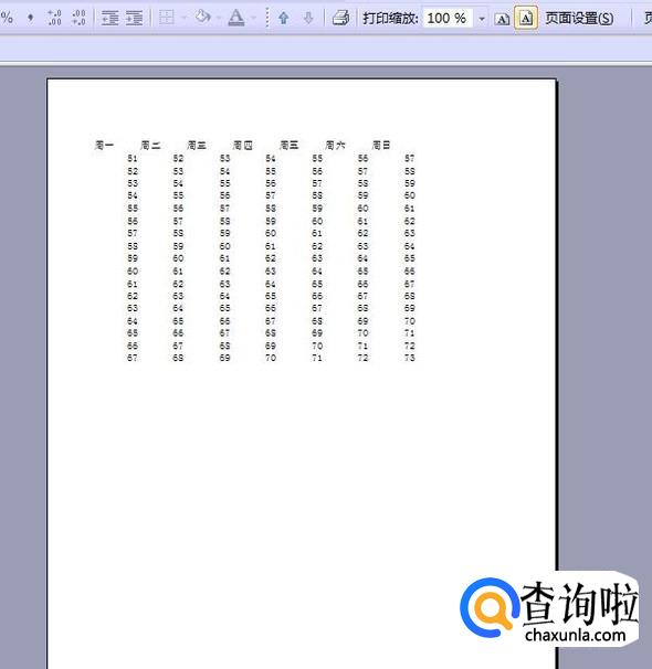 打开需要设置表头的文档,假设我们想要打印出来的每一页前面都用星期这行作为表头。