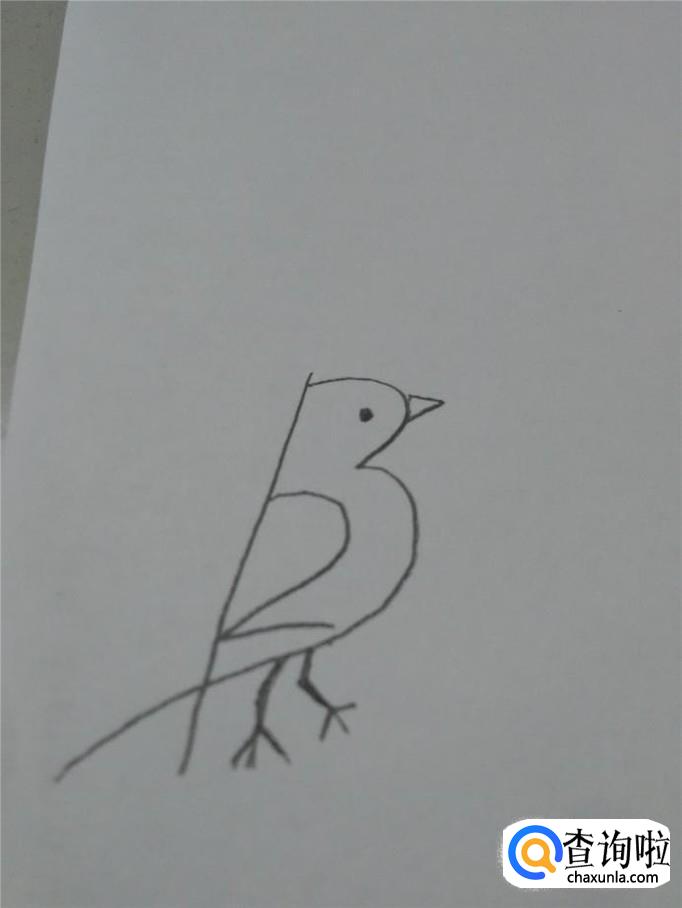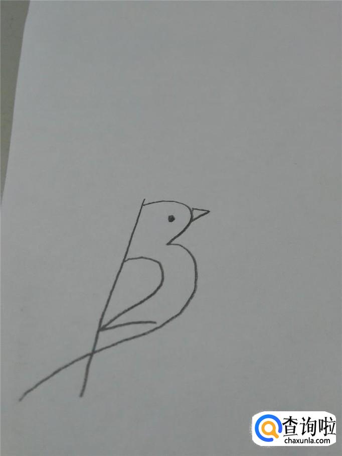 用笔在小鸟头上点一个黑点,表示眼睛。