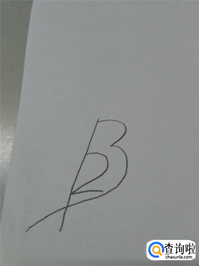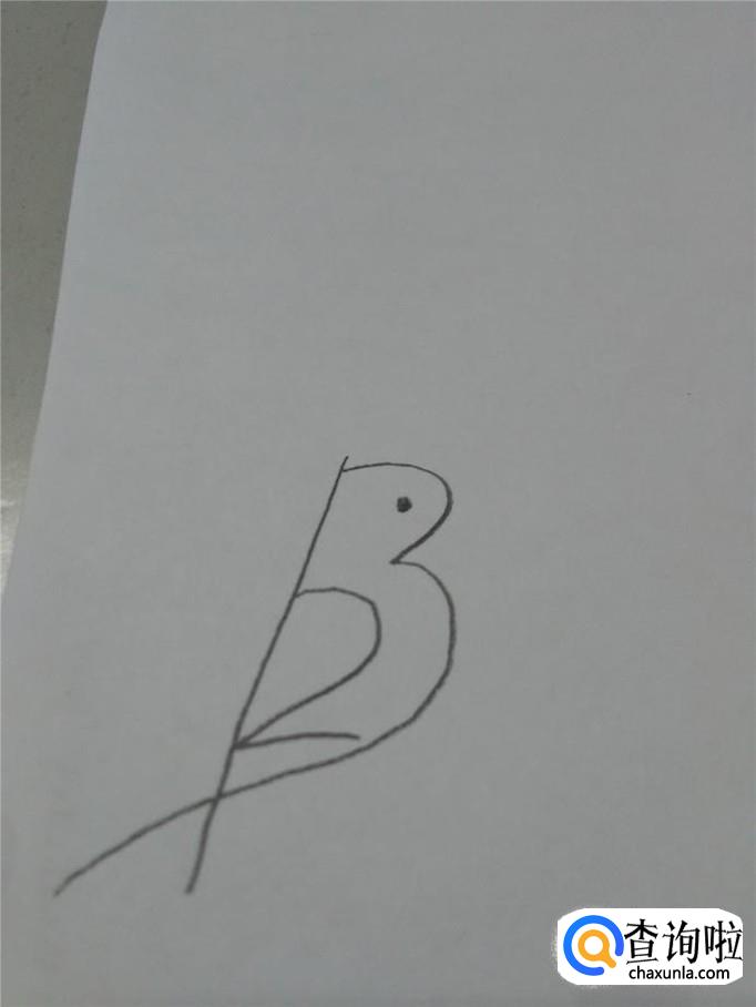 在2的右边画一个3,两端和1相交,末端要穿过1的下方。这是小鸟的头和肚子,穿过1的线表示尾巴。