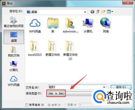 点击导出选项,我们设置保存类型为PNG,然后给文件命个名字,如图所示: