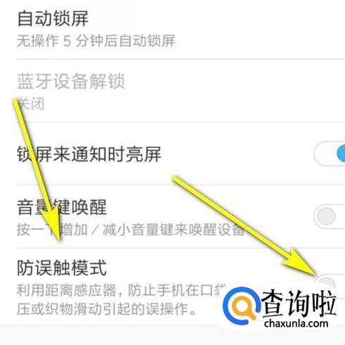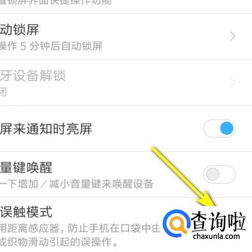 转到另一个页面中,在这里把页面往下拉,就看到:防误触模式。当前状态是关闭的。