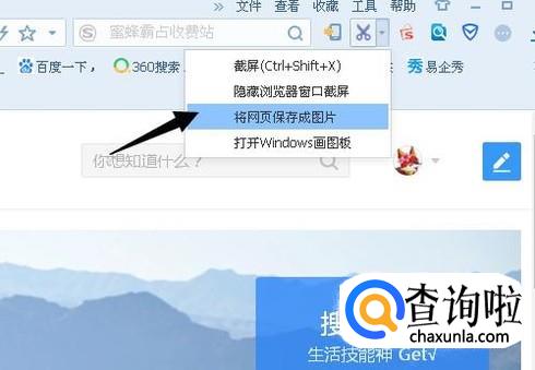 点击截图功能的倒三角星,选择“将网页另存为图片”