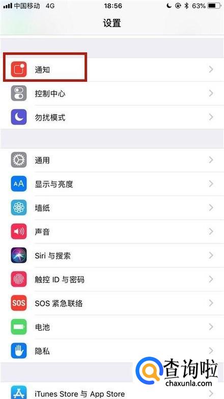 然后点击通知,如下图所示。