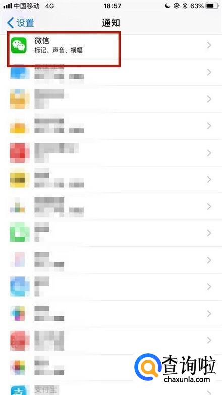 接着返回上一个界面,找到微信并点击它,如下图所示。