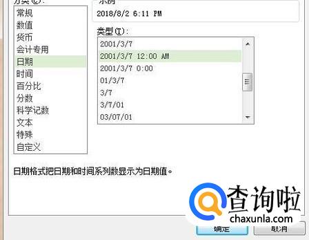 然后选择我们要的日期类型并点击确定,如下图所示。