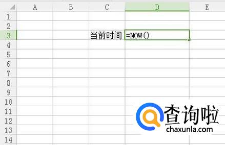 然后在D3单元格输入“=now()”,如下图所示。
