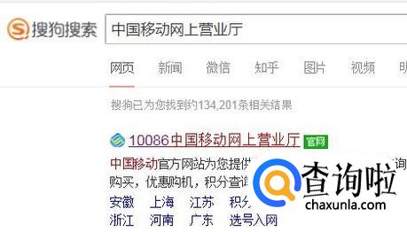 然后点击中国移动网上营业厅官网,如下图所示。