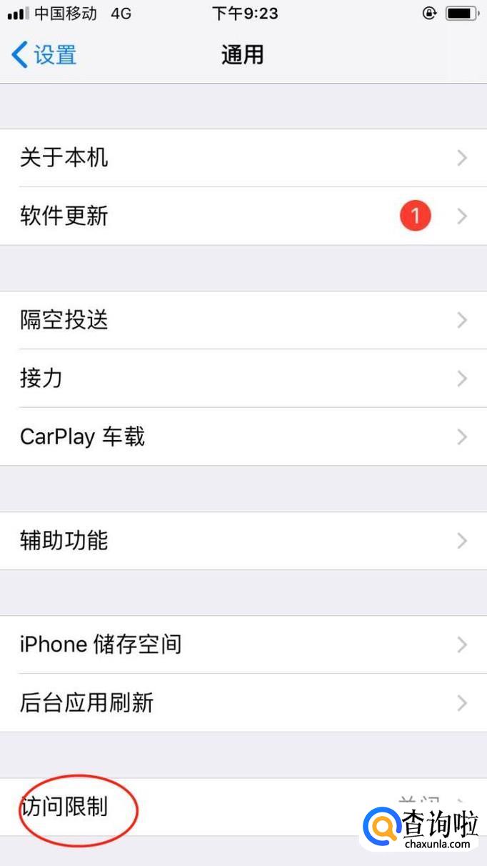在“通用”里面找到“访问限制”选择打开。