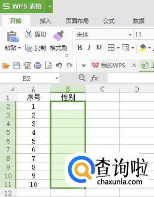 选中需要输入男女的区域(如图)
