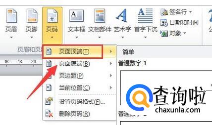 在弹出的选项中,选择插入页码的位置,小编选的是在页面顶端插入页码,然后点击普通数字1。
