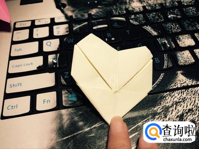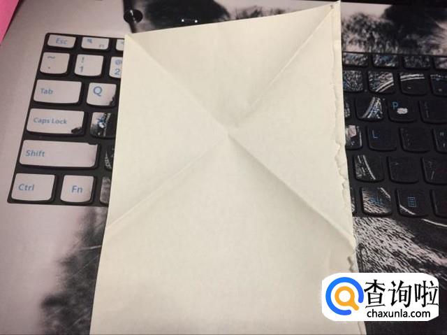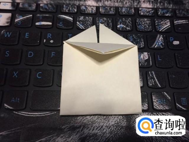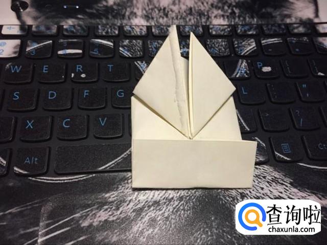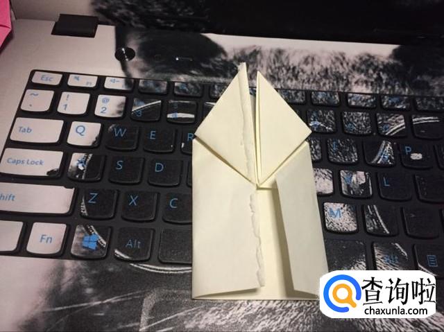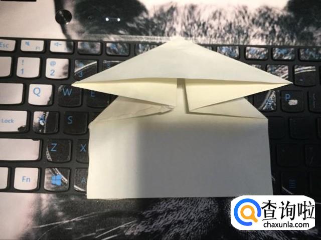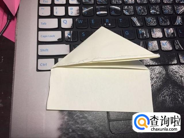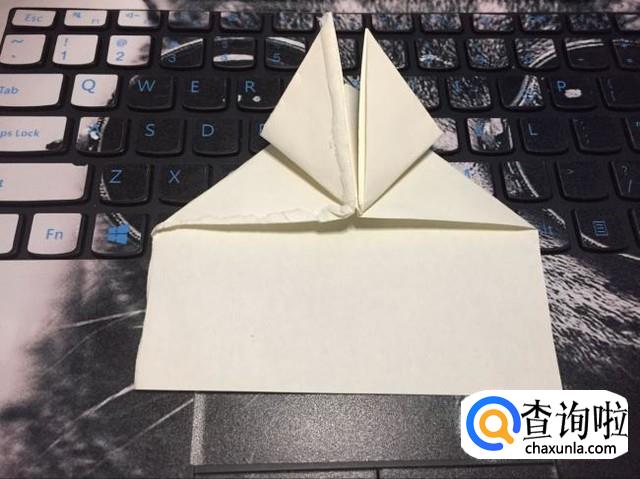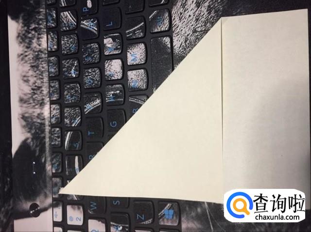 然后沿着一条线,将一边对折,然后按照折痕将纸张的前部压折成为一个三角形。