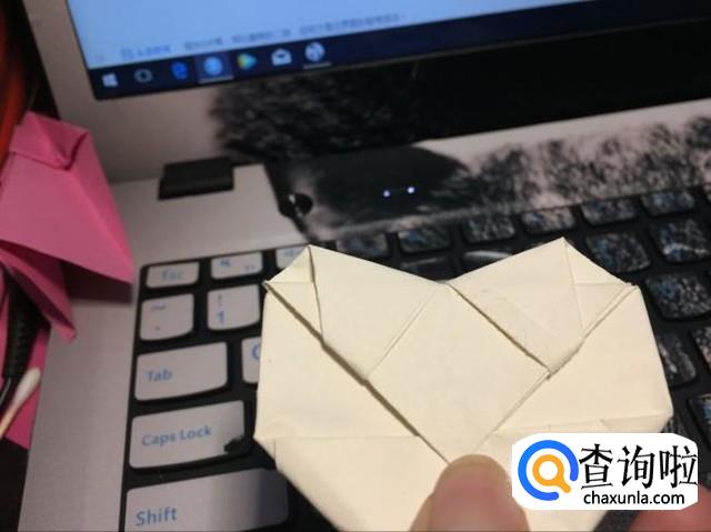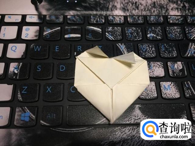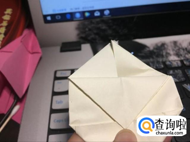 将上面部分的角向内对折再对折,出现交叉折痕。