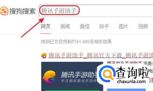 我们需要在电脑上安装一款名为“腾讯手游助手”的软件,通过搜狗搜索可以找到它,如图;