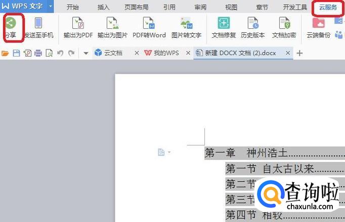 然后,我们点击菜单栏“云服务”,“分享”。